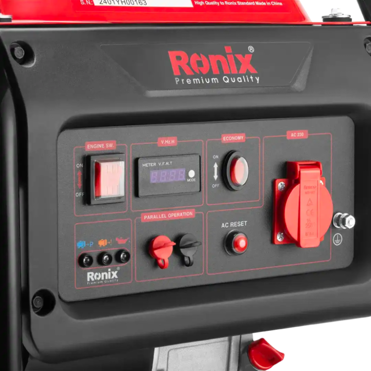 این موتور برق بیصدای رونیکس مجهز به قطعکن حفاظتی سریع است و باعث ایمنی بیشتر کاربر میشود. همچنین سیمپیچ ۱۰۰ درصد مسی این دستگاه، استفاده از آن را در مصارف طولانیمدت امکانپذیر میکند. این ژنراتور اینورتر صدا و لرزش کمی دارد و برای استفاده در فضاهای بسته مناسب است.